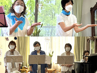 ルポゼさん、はーと♡さんによるミニコンサート。美しいハーモニーと演奏に心が和らぎます。