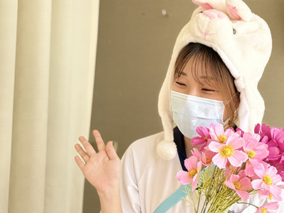 季節のイベントや誕生日はにぎやかです。ドクターやナースが仮装し、飾りを持ってお部屋を巡り、みんなで歌を歌ったり、記念撮影したり。ボランティアさんも一緒に参加し、お手伝いします。