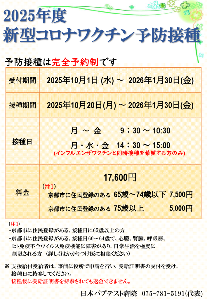 2025年度新型コロナワクチン予防接種のご案内