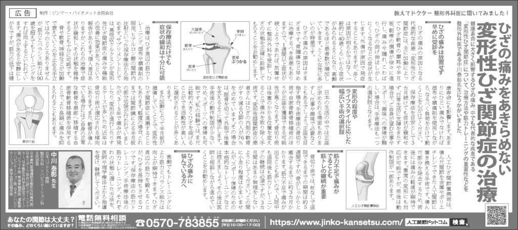 3/21(土)の京都新聞朝刊に当院の整形外科中川主任部長の記事が掲載されました。