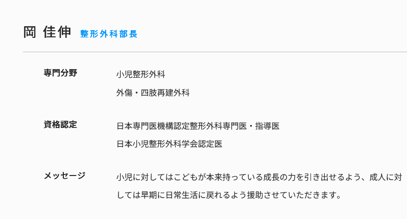 整形外科(小児整形)岡佳伸医師着任のお知らせ