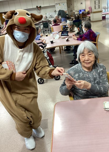 職員だけでなく、利用者さまもサンタの衣装を身にまとい、会場は一段と華やかな雰囲気に。サンタやトナカイがあちこちに現れ、笑顔があふれる楽しい時間となりました。