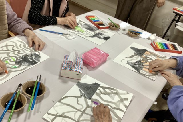 先日、臨床美術士の方々によるアートプログラム「のびるね!」が行われました。