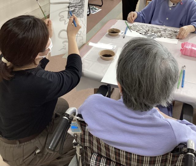 一緒に作品を作り、お互いの作品を見合うことで、利用者どうしでの会話も弾んでおられ、温かい時間となりました。